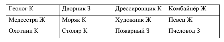 Интерпретация: если испытуемый правильно определил все профессии, влияющие на окружающею среду, – выполнение 100%, нет - в зависимости от процентной ставки.