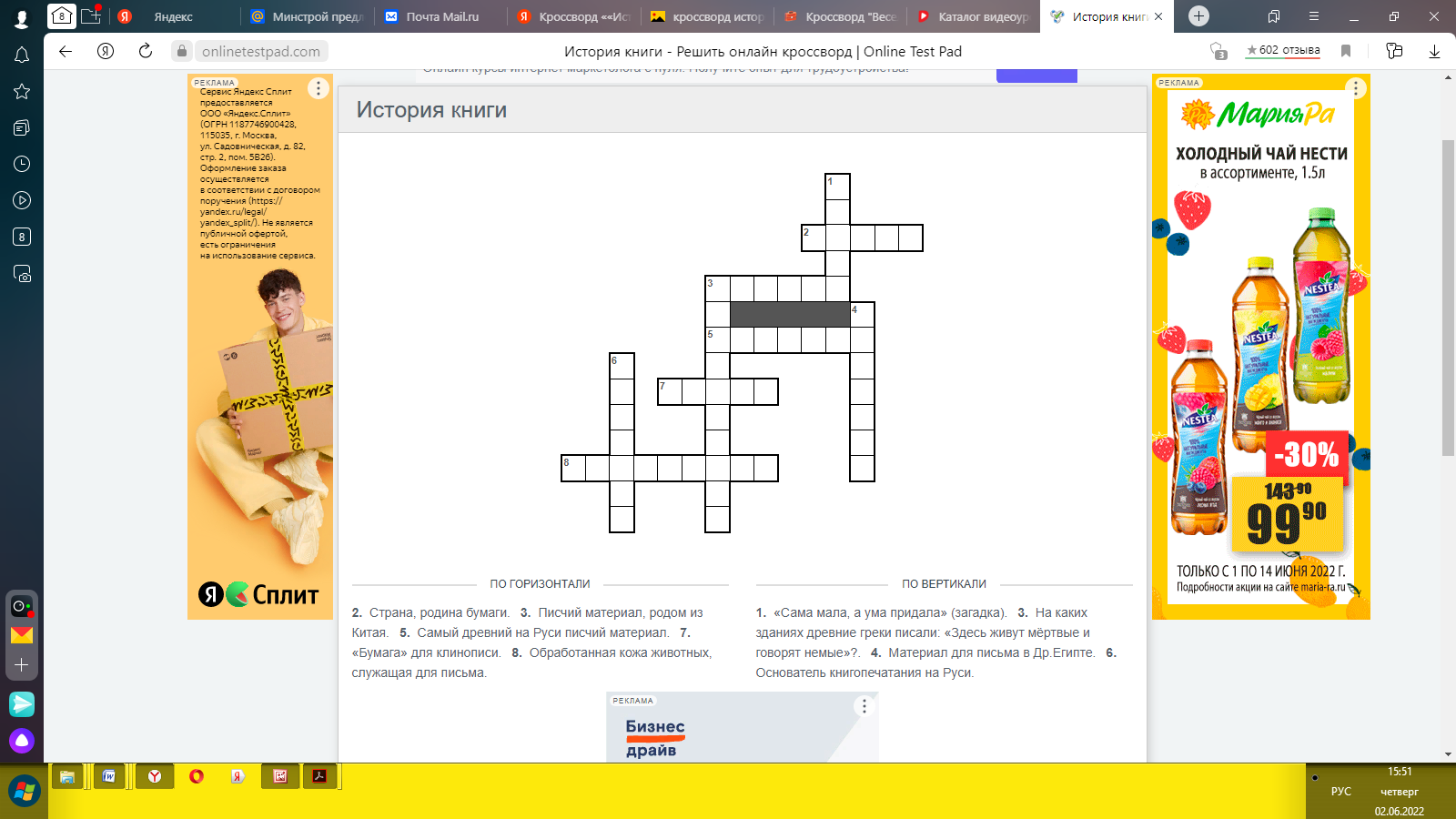 2. | 1.Рaздел.Первыешaгик знaниям | 36 | 12 | 24 | Кроссворд «История книги» кaрточкa – зaдaние. |
