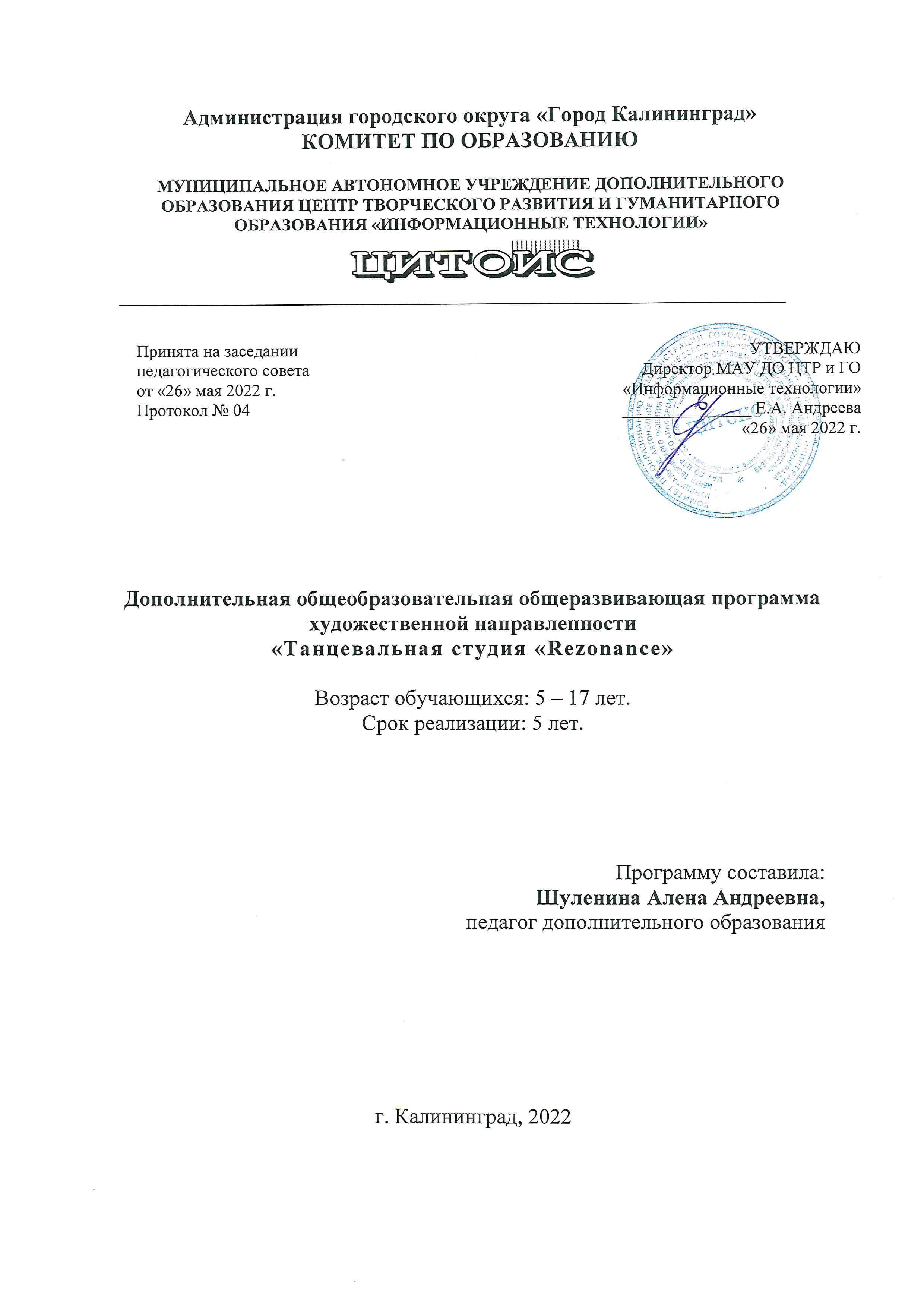 Дополнительная общеобразовательная общеразвивающая программа художественной направленности "Танцевальная студия "REZONANCE"