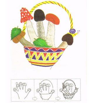 - А теперь давайте же посмотрим, как наша ладошка будет превращаться в лукошко с грибами.