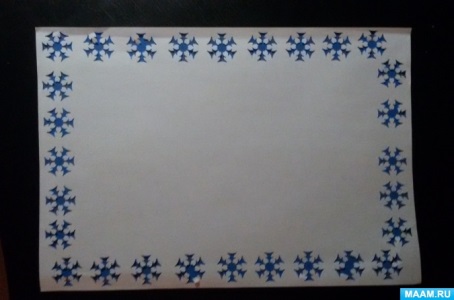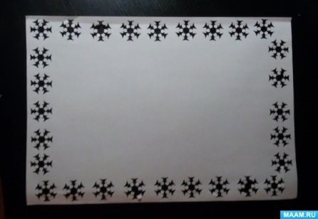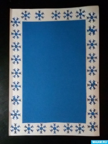 Затем на листке А -4 белого цвета фигурным дыроколом делаем снежинки для рамочки: