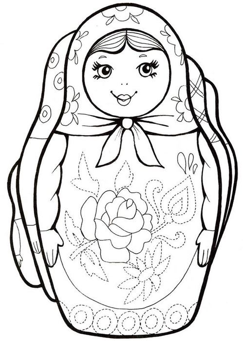 Дорисуй узоры на матрёшке и раскрась её. Сколько всего матрёшек на картинке.
