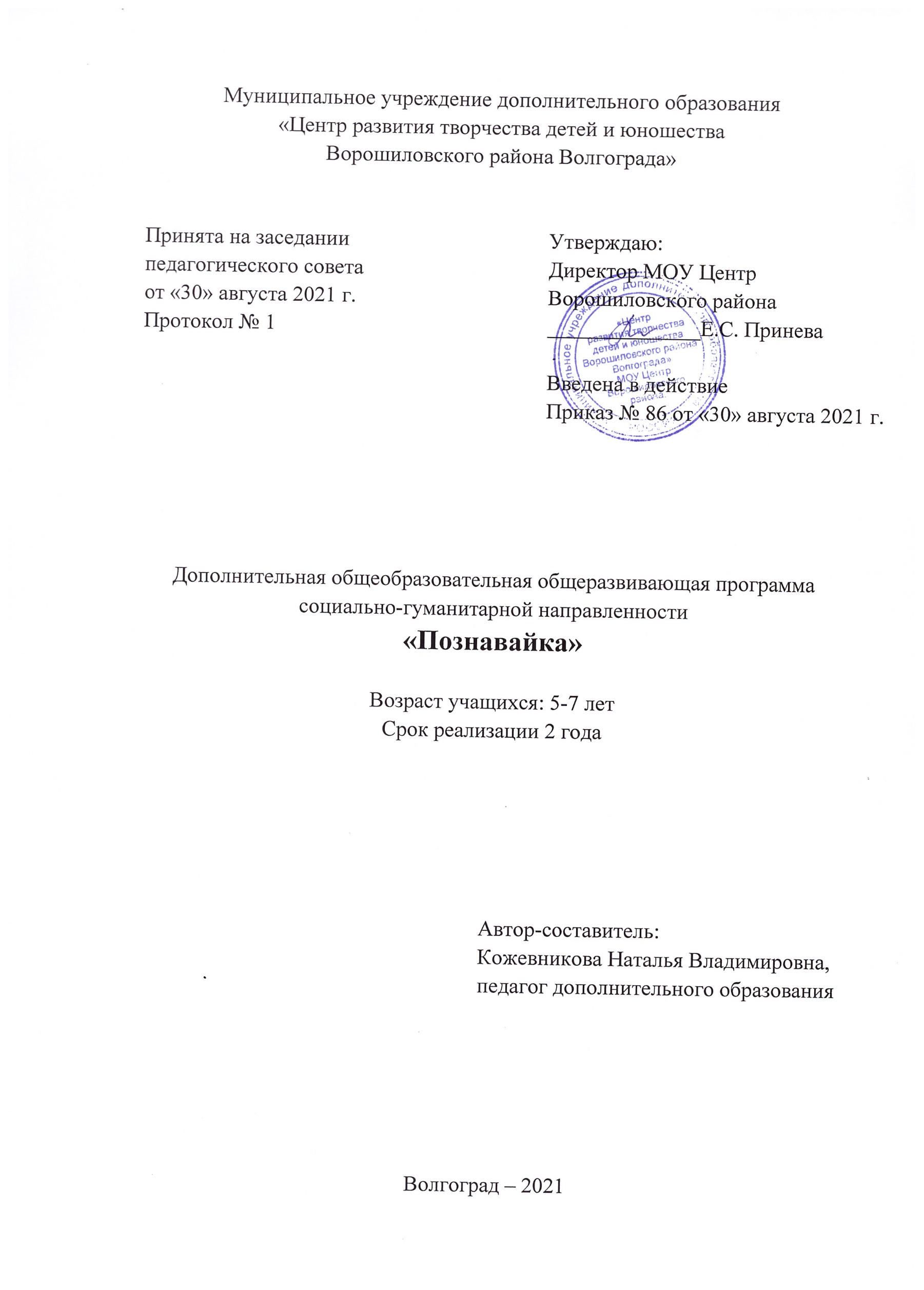 Раздел 1. Комплекс основных характеристик дополнительной общеобразовательной общеразвивающей программы «Познавайка»