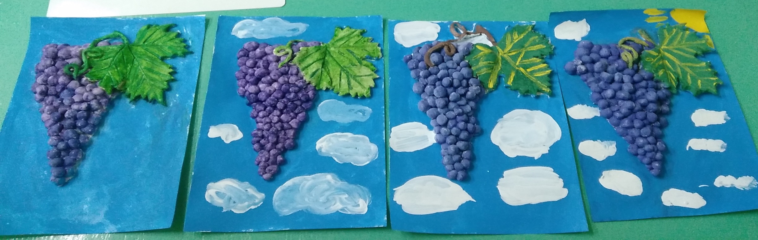 В любом из перечисленных случаев на занятиях царила творческая атмосфера. Дети с интересом и удовольствием изготовливают композиции с гроздью винограда.