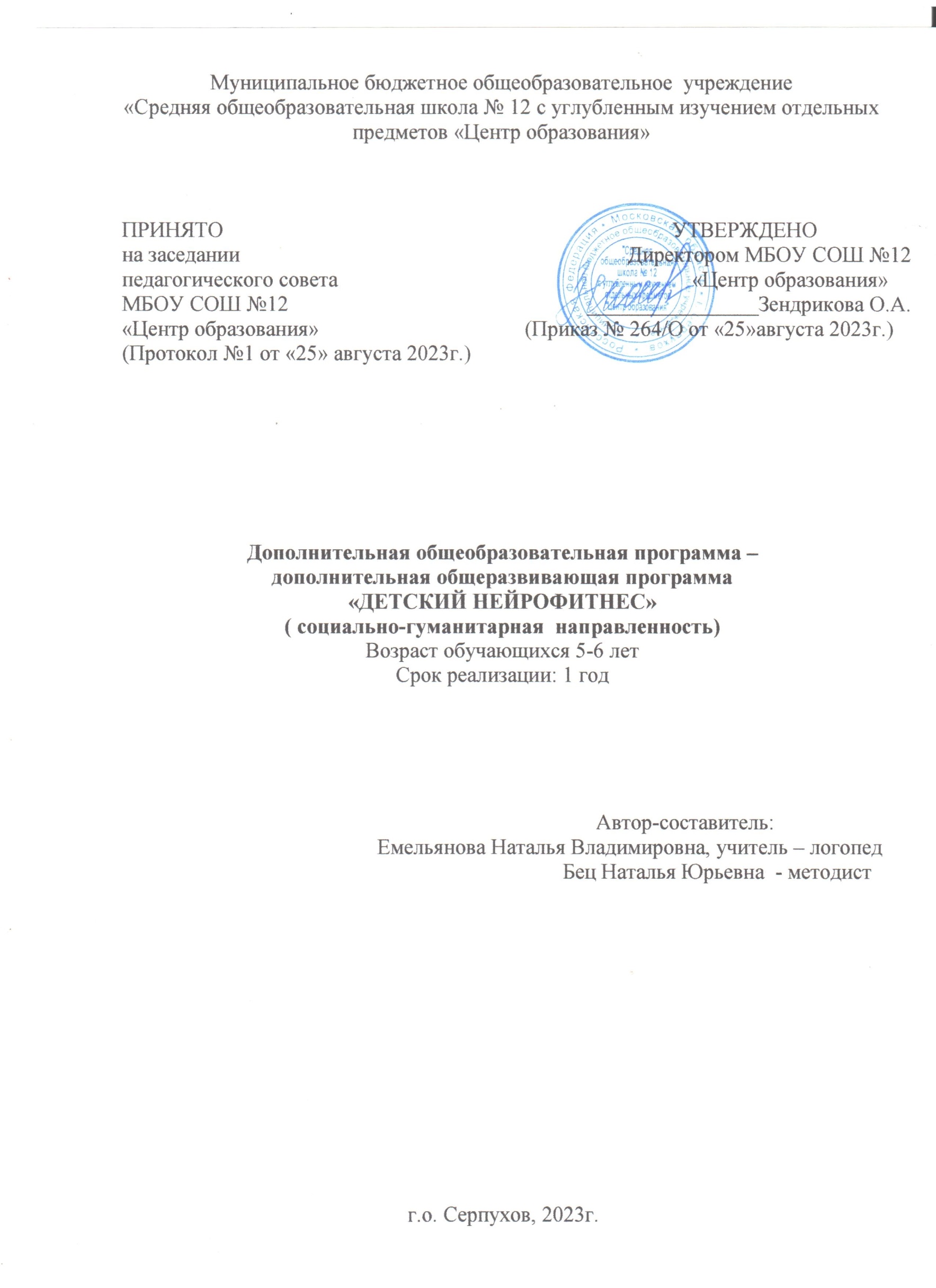 Дополнительная общеобразовательная программа – дополнительная общеразвивающая программа «ДЕТСКИЙ НЕЙРОФИТНЕС»