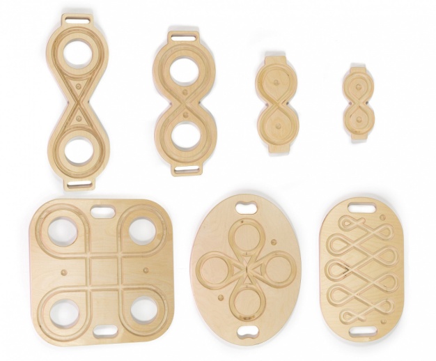 1) Доска располагается перед ребенком. Встать на доску и покачаться на ней.