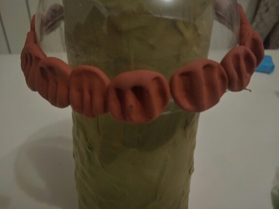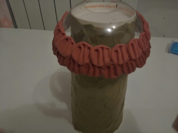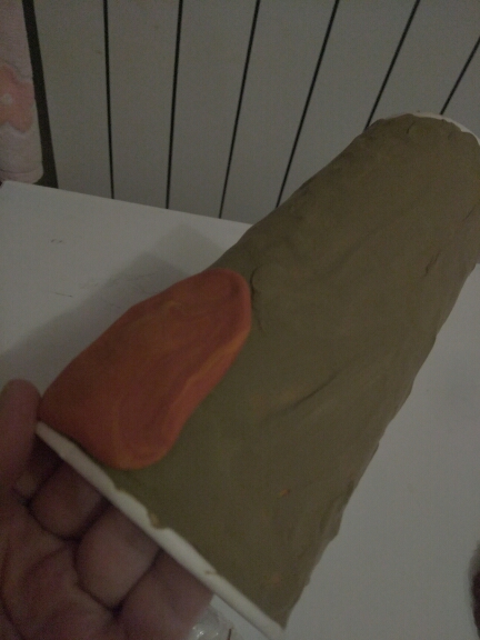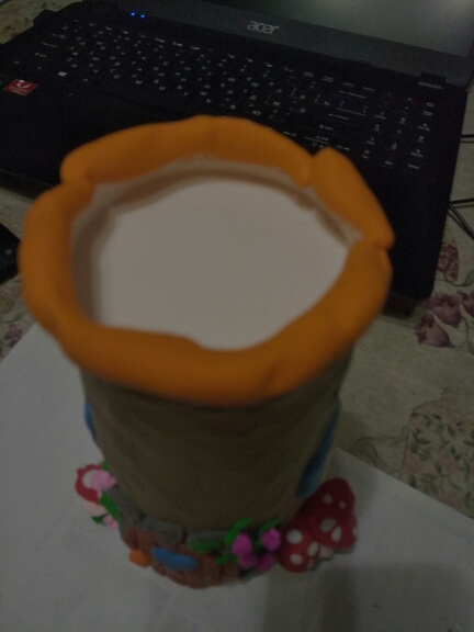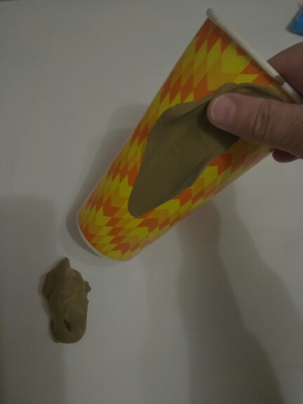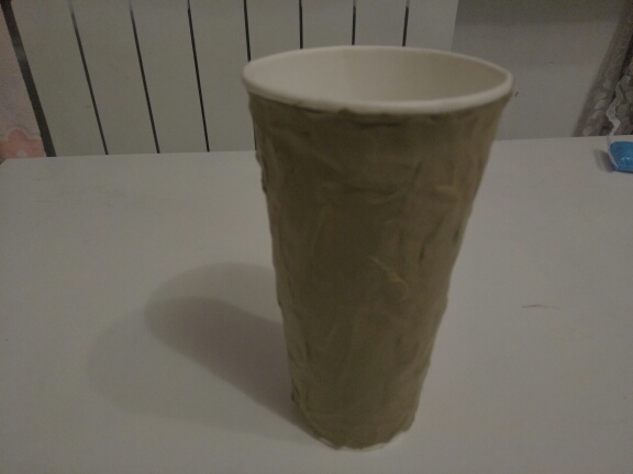 Ход работы: Из пластилина оливкового цвета облепите бумажный стаканчик тонким слоем, он станет основой для домика.