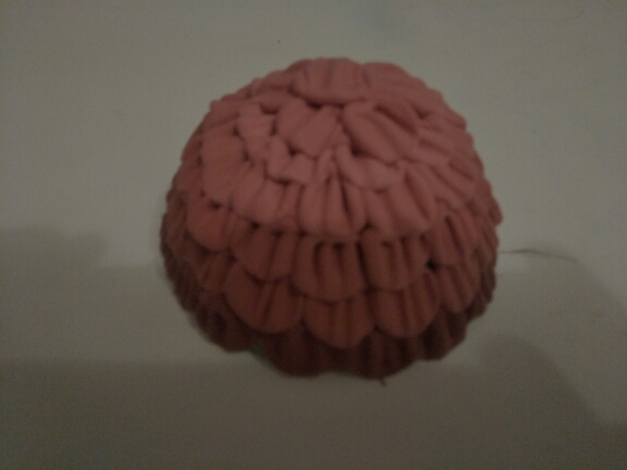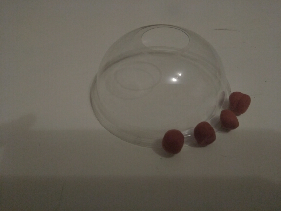 Из коричневого пластилина скатайте мини шарики для черепицы, расположив их равномерно на основании пластиковой полусферы.