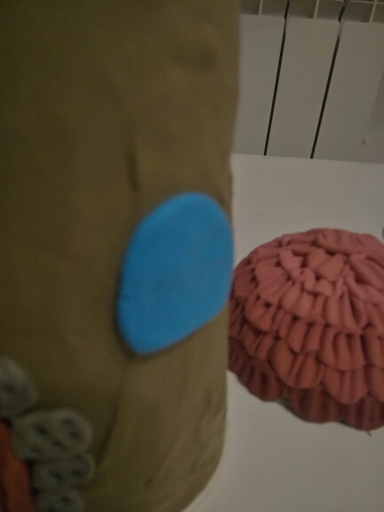 Аналогичным образом сформируйте рамы для окна. Из белых шариков сделайте стекла прижав их к синему окну.