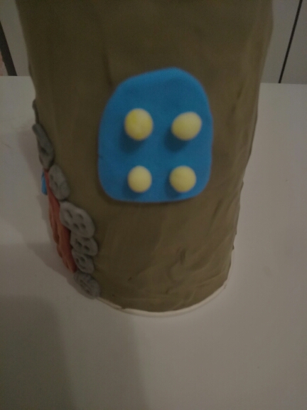 Из коричневого пластилина слепите дверь.