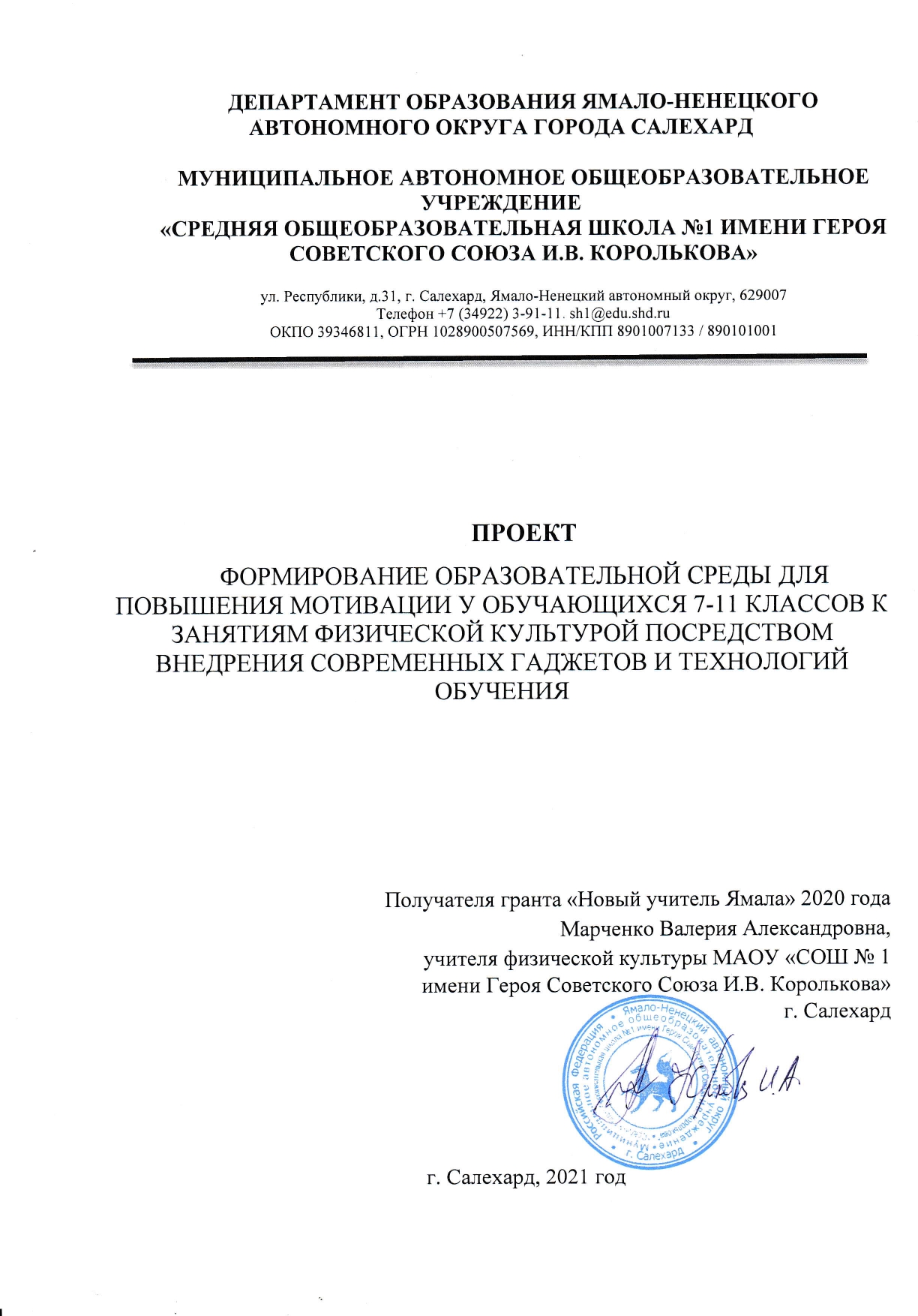 Проект: " Формирование образовательной среды для повышения мотивации у обучающихся 7-11 классов к занятиям физической культурой посредством внедрения современных гаджетов и технологий обучения"