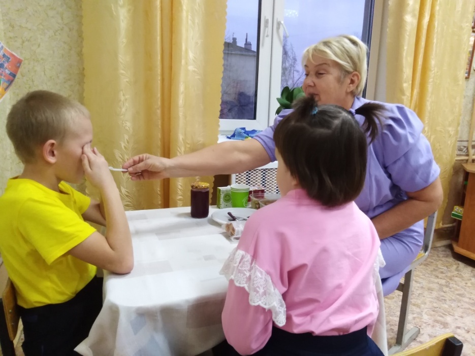 Игра «Угадай на вкус» | Уточнить у детей названия фруктов, формировать умения определять их на вкус, называть и описывать, обогащать вкусовые качества. Активизировать речь детей. Развивать память, сосредоточенность, выдержку. Воспитывать познавательный интерес. | Определение фруктов на вкус, не глядя на него. Пробование с закрытыми глазами, называние фрукта. | Сейчас с вами поиграем в очень вкусную игру «Угадай на вкус» (яблоко, банан, груша) Дети с закрытыми глазами пробуют фрукты, открывают глаза, называют фрукты (Руслан), показывают картинку или табличку (Диана) Посмотрите, сколько вкусного можно приготовить из фруктов: варенье, сок, повидло. (проговаривают по табличкам) | Дети с закрытыми глазами пробуют фрукты из рук педагога, отгадывают, что это за фрукт. Руслан называет, Диана проговаривает название по табличкам. |