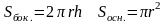 146. Назовите формулу площади полной и боковой поверхности, объема цилиндра.