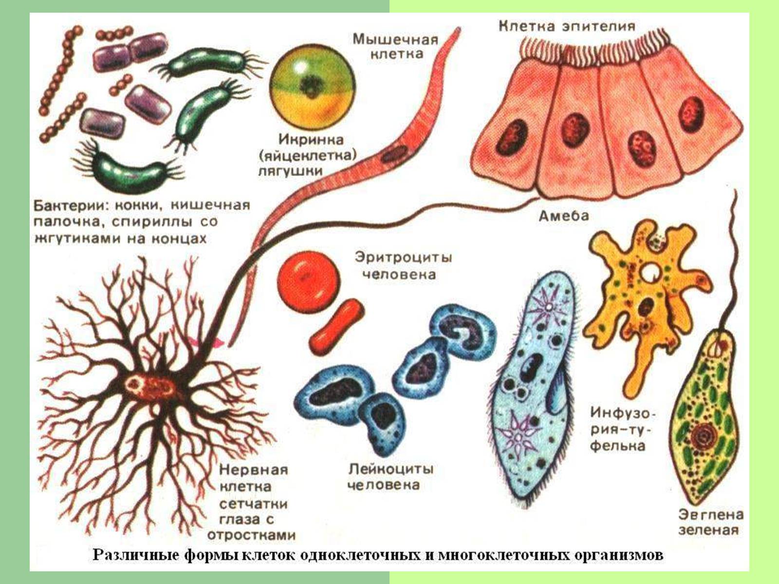 Задание № 1: Пользуясь учебником, рисунком, изучить и зарисовать в тетрадь различные формы клеток.