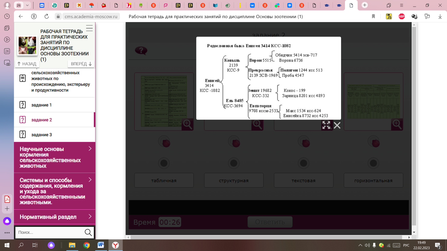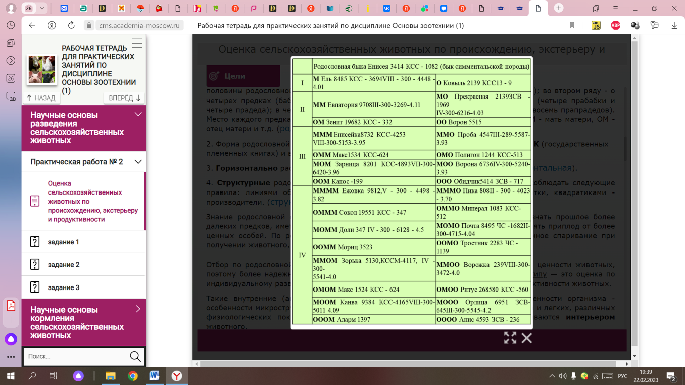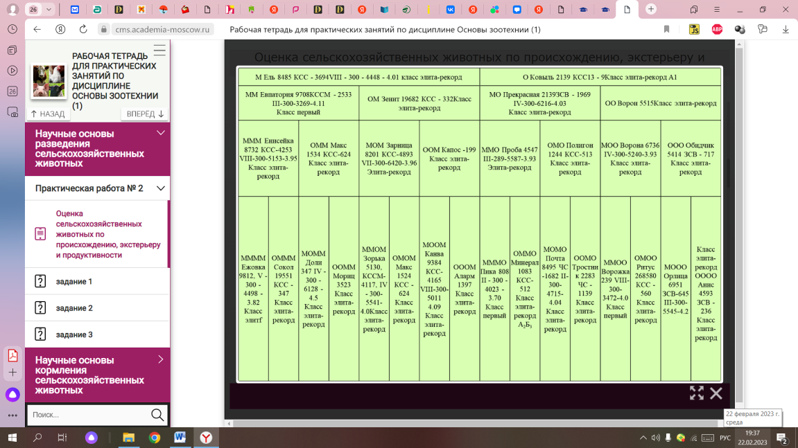 РАБОЧАЯ ТЕТРАДЬ ДЛЯ ПРАКТИЧЕСКИХ ЗАНЯТИЙ ПО ДИСЦИПЛИНЕ ОСНОВЫ ЗООТЕХНИИ