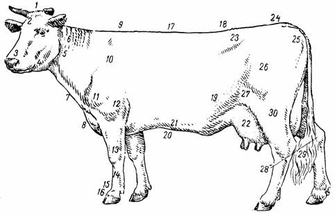 Цель работы: Изучить строение, топографию и основные физиологические функции пищеварительного аппарата у сельскохозяйственных жвачных животных, строение скелета крс.