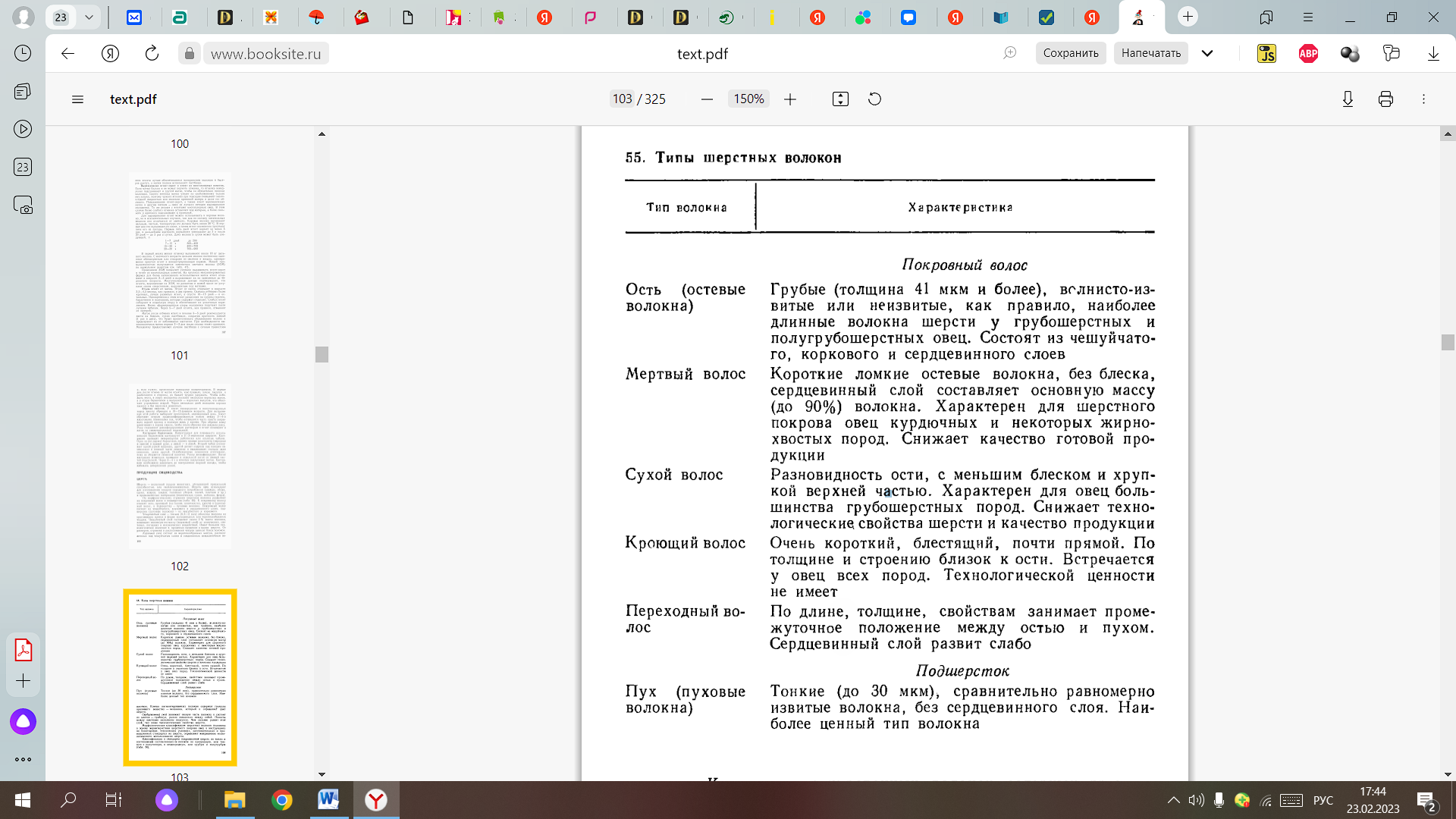 Выход чистой шерсти у тонкорунных овец 40 — 50%, полутонкорунных — 45 — 65%, у грубошерстных — 55 — 80%.