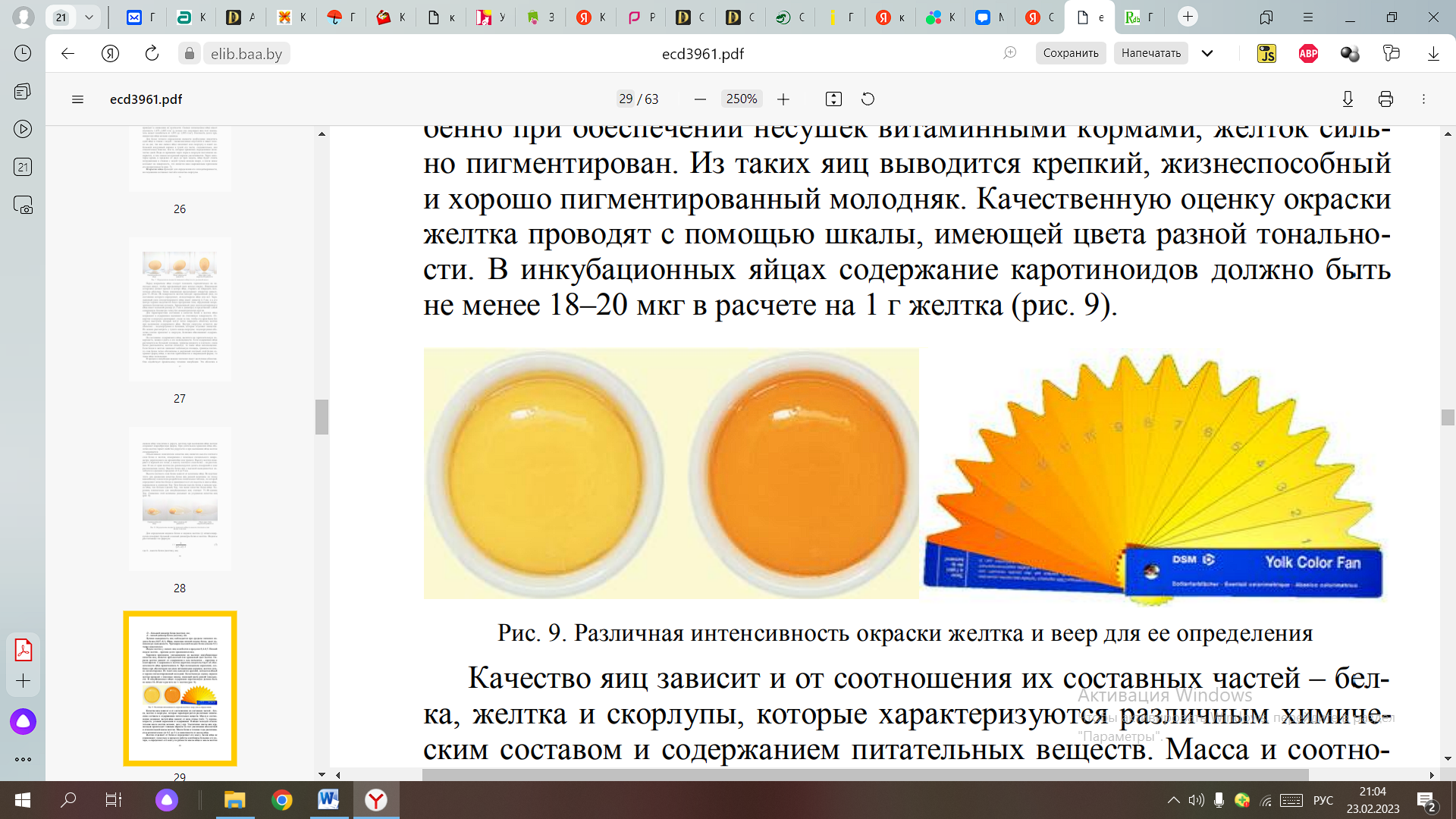 Хорошим признаком, указывающим на высокие инкубационные качества яиц, является ярко-желтый или оранжевый цвет желтка. Окраска желтка зависит от содержания в нем пигментов – каротина и ксантофилла. Содержание в желтке каротина свидетельствует об обеспеченности яйца провитамином А.