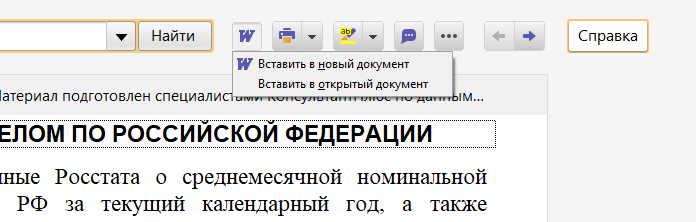 Экспортируйте данный документ в MicrosoftOfficeWord. Для этого в правой рабочей области, над текстом документа нажмите кнопку Wи в открывшемся меню выберите Вставить в новый документ: