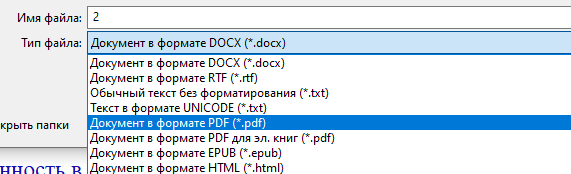 Далее, в открывшемся окне, укажите имя файла и выберите тип файла PDF:
