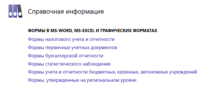 В разделе Справочная информация зайдите в раздел Формы в MS-Word,MS-Excel и графических форматах: