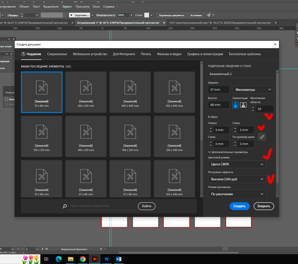 Создайте документ в AdobeIllustrator. Параметры документа: размер монтажной области 88х57 мм. Это — обрезной формат.