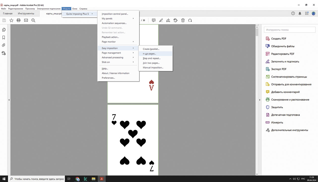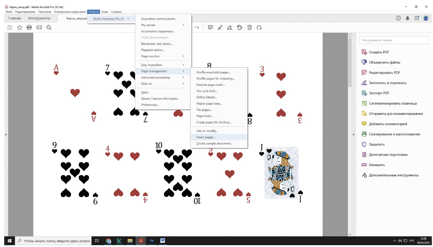 Визуальные вспомогательные материалы, иллюстрирующие работу плагина Quiteimposingplus, на примере игральных карт: