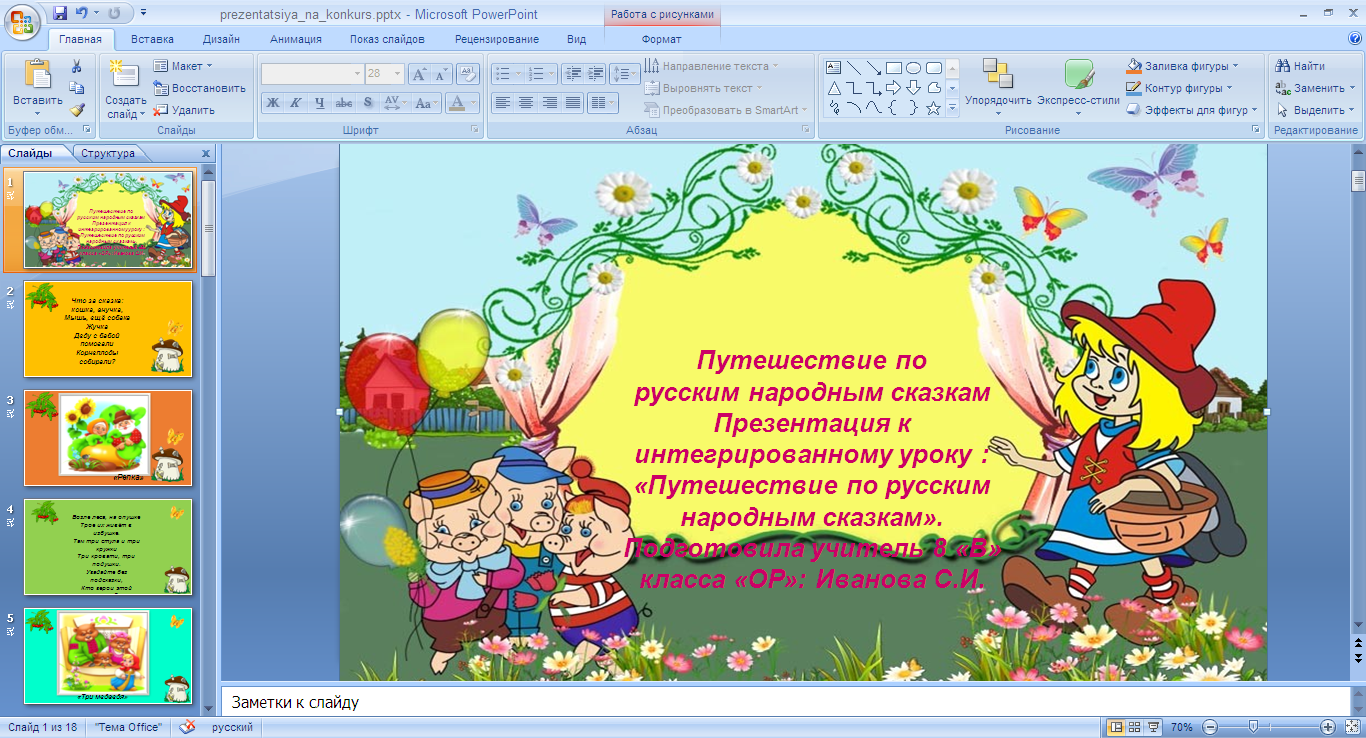Введение в урок | 1. Презентация по теме: «Путешествие по русским народным сказкам» |
