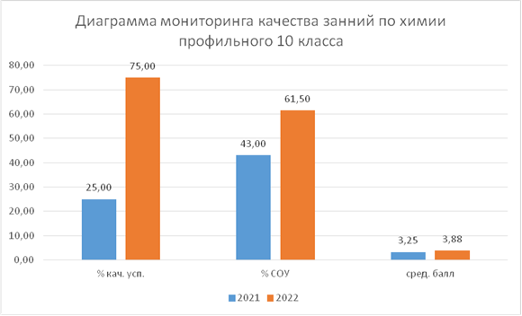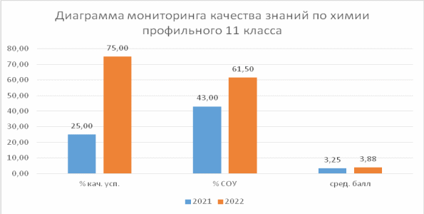 На втором – ценностно-организационном – этапе (во втором полугодии 2020–2021 учебного года и три четверти 2021-2022 учебного года) проведена практическая работа по реализации педагогических условий формирование у учащихся профильных классов средней школы системных знаний по химии в процессе образования.