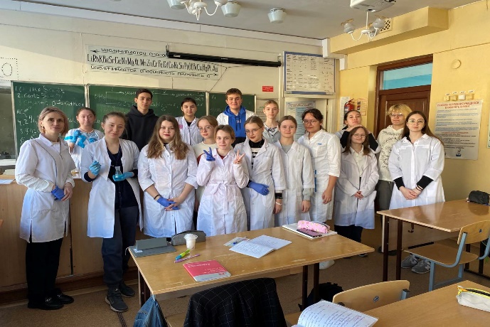 1. Городской конкурса по химии «Взгляд в будущее» с 10 классом, снимали ролик про профессии: химик-аналитик, лаборант-газов. Помимо информационной части, в ролике демонстрировали практическую часть: проводили анализ, лабораторные работы в соответствии со спецификой данной профессии. Видео представлено на Яндекс диске: