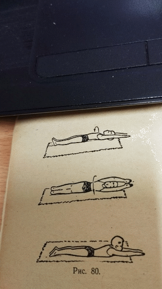 При повороте туловища на живот стараться не отрывать руки и ноги от пола |
