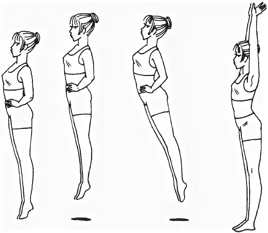 Следить, чтобы дети прыгали без шумно, приземлялись мягко на слегка полусогнутые ноги в коленях |