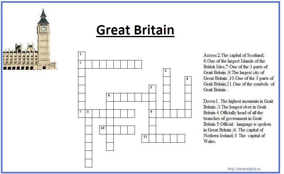 Now I”ll give you a crossword puzzle. Be ready to solve it! Every correct answer is one point.