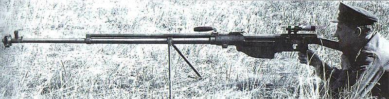 Одно из таких образцов было 14,5 миллиметровое, при длине 2 м оно имело массу 17,3 кг и делало 8–10 выстрелов в минуту; начальная скорость пули массой 63 г равнялось 1012 м/с.