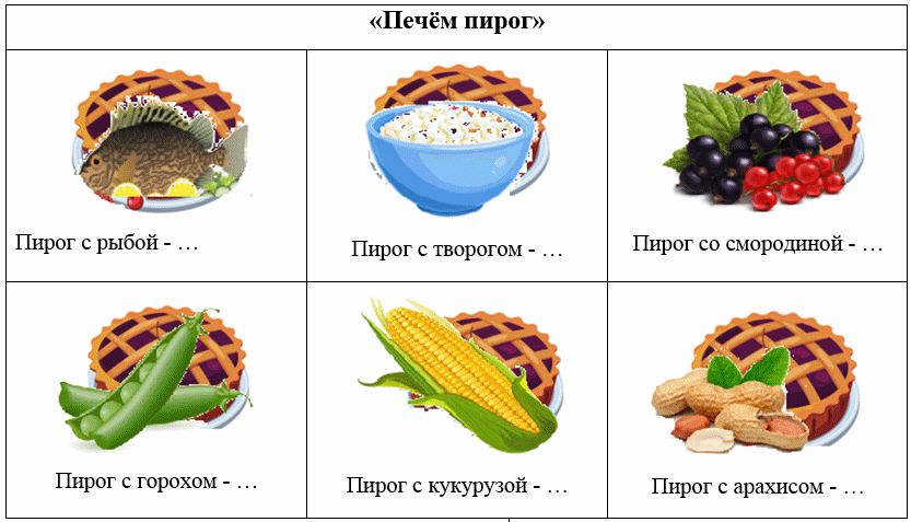 Д/И «Печём пирог» | Автоматизация [Р] в словосочетаниях | - Сейчас мы будем печь… А что мы будем печь ты узнаешь, если отгадаешь загадку: Подготовим место, Раскатаем тесто. Тут есть рыба, тут – творог Будем печь сейчас … - Отлично. Пироги бывают с разными начинками (Приложение 2). Например, пирог с рыбой будет …