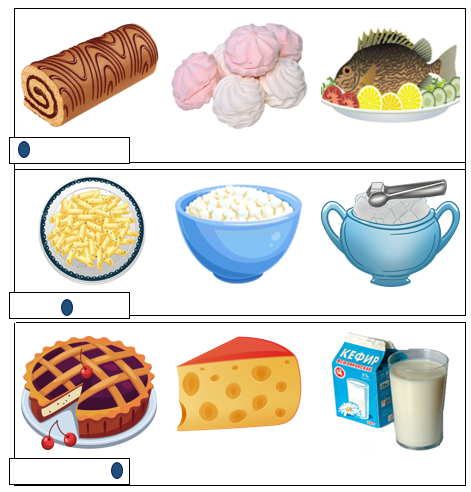 - Как можно назвать все изображения одним словом? Верно. - Посмотри, в каждом ряду нарисована схема слов, где синий кружок – это место звука в слове. Проведи линии от нужного изображения к схеме в каждом ряду. - Назови лишние картинки в каждом ряду. Посчитай место звука [Р] в названии этих картинок, и напиши нужную цифру. | Называет, обращая внимание на артикуляцию звука [Р] (рулет, зефир, рыба; макароны, творог, сахар; пирог, сыр, кефир). -Продукты питания Рассматривает схемы слов. Проводит линии от картинок к нужной схеме. Называет, четко проговаривая звук [Р] (зефир, сахар, пирог), под картинкой пишет цифру, соответствующую порядковому номеру звука в слове. | Закреплять навык произнесения звука [Р] в словах. Упражнять в умении определять место звука в слове. Формировать навык определения порядкового места звука в слове. | ||