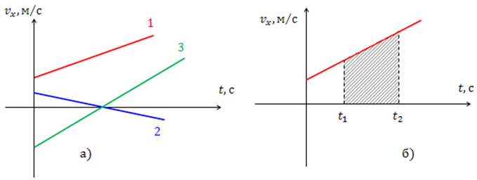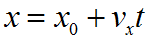 Уравнение | Вид движения | х0, м | υ0 , м/с | а , м/с2 | Уравнение зависимости υx= υx(t) | Время встречи t, с | Место встречи(координата) х , м |