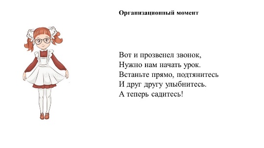 Вот и прозвенел звонок Нужно нам начать урок Встаньте прямо, подтянуться И друг другу улыбнитесь. А теперь садитесь.