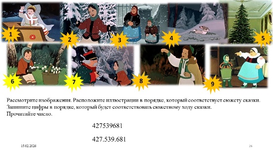 Рассмотрите изображения. Расположите иллюстрации в порядке, который соответствует сюжету сказки.
