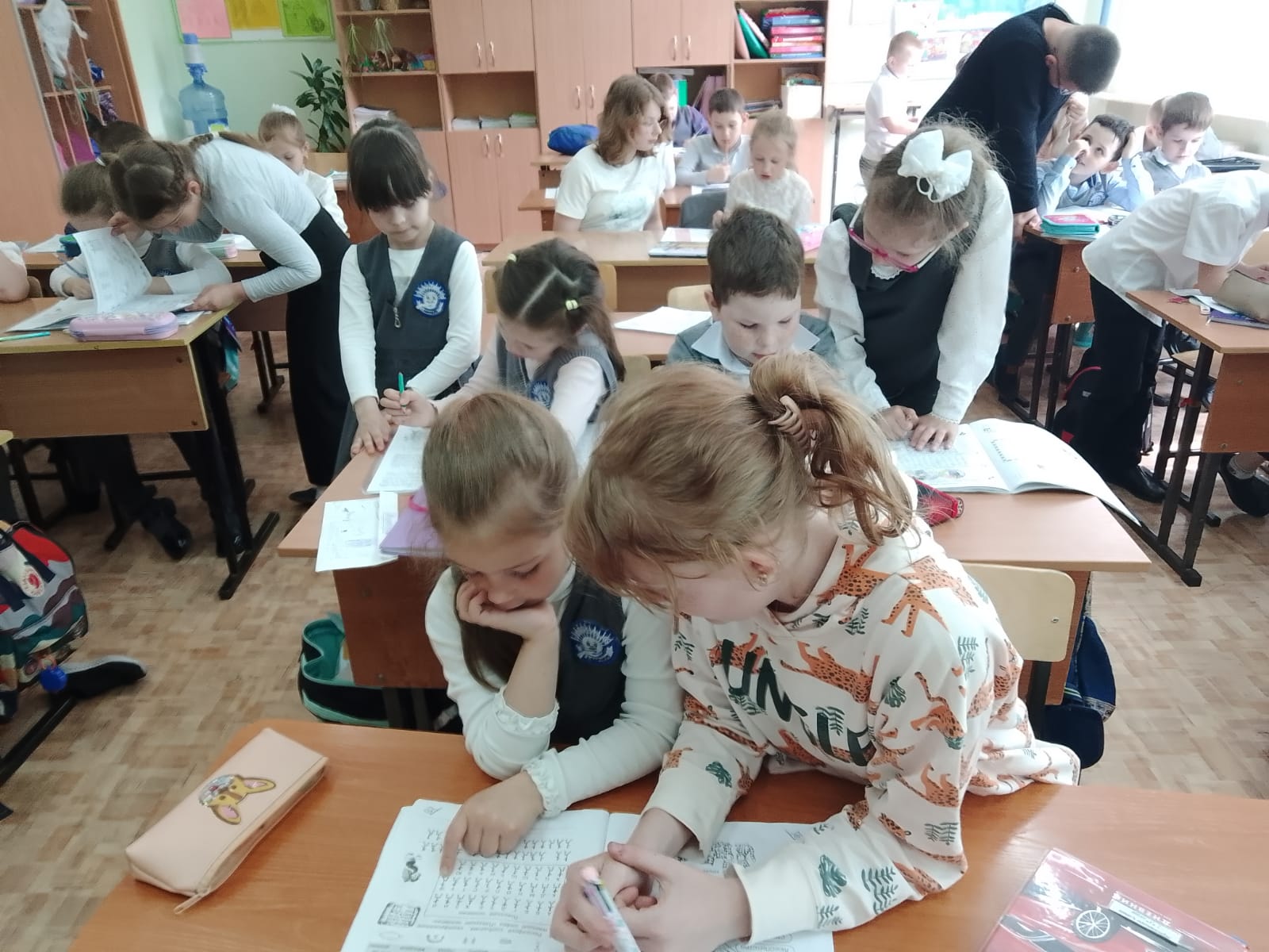 Елена Александровна Голубцова подготовила вопросы из раздела по литературному чтению, раздала их юным наставникам, учащимися 5 А и 9 А классов. Когда ребята были готовы, то Елена Александровна записала видео, где старшеклассники задают вопросы.