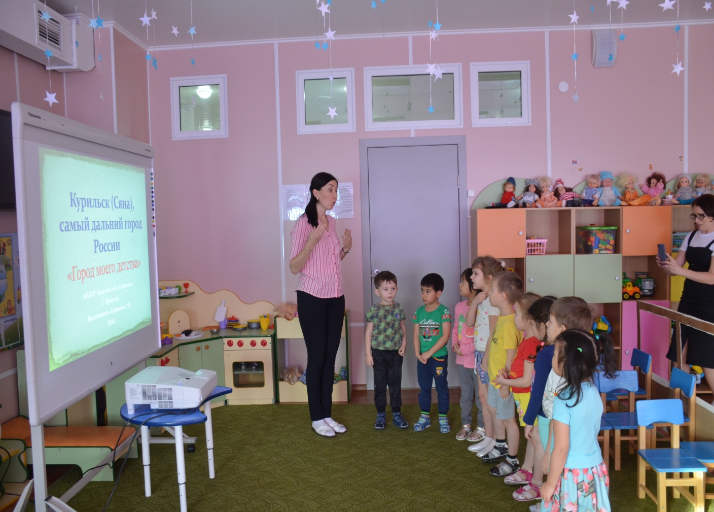 Воспитатель:Правда, у нашего города красивое название? Мы с вами и все люди, которые живут в нашем городе, называются курильчане. Люди, которые родились и живут в каком-либо городе, любят его, он для них родной.