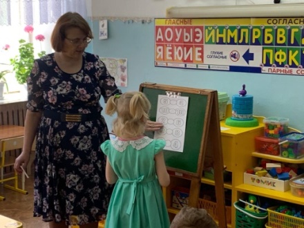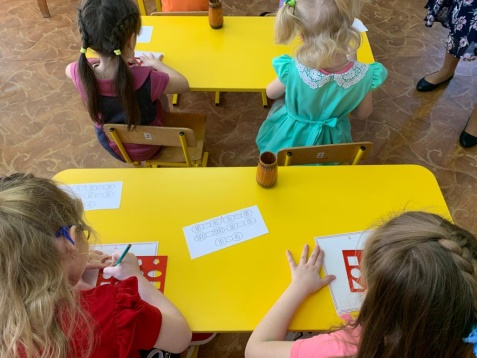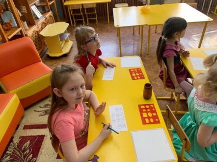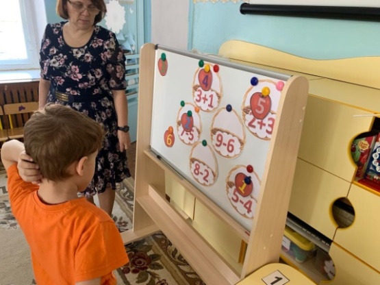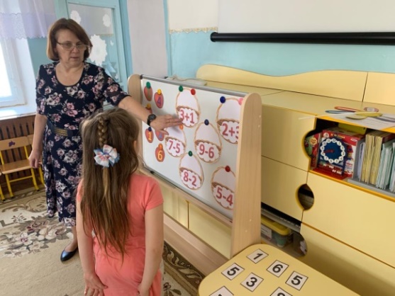 В следующем задании вам надо правильно сравнить цифры. Один работает возле мольберта, а остальные самостоятельно выполняют.