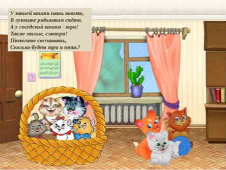 1.задача - Как получилось число 8? Выложи при помощи карточек с числами и знаков на мольберте, решение и ответ задачи. (3+5=8)