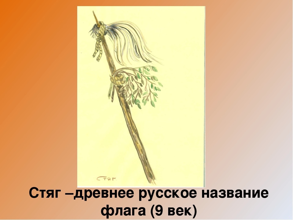 Много веков тому назад вместо флага люди использовали шест, привязывали к его верхушке пучки травы, красили ее, это был – стяг! Так раньше называли флаг.