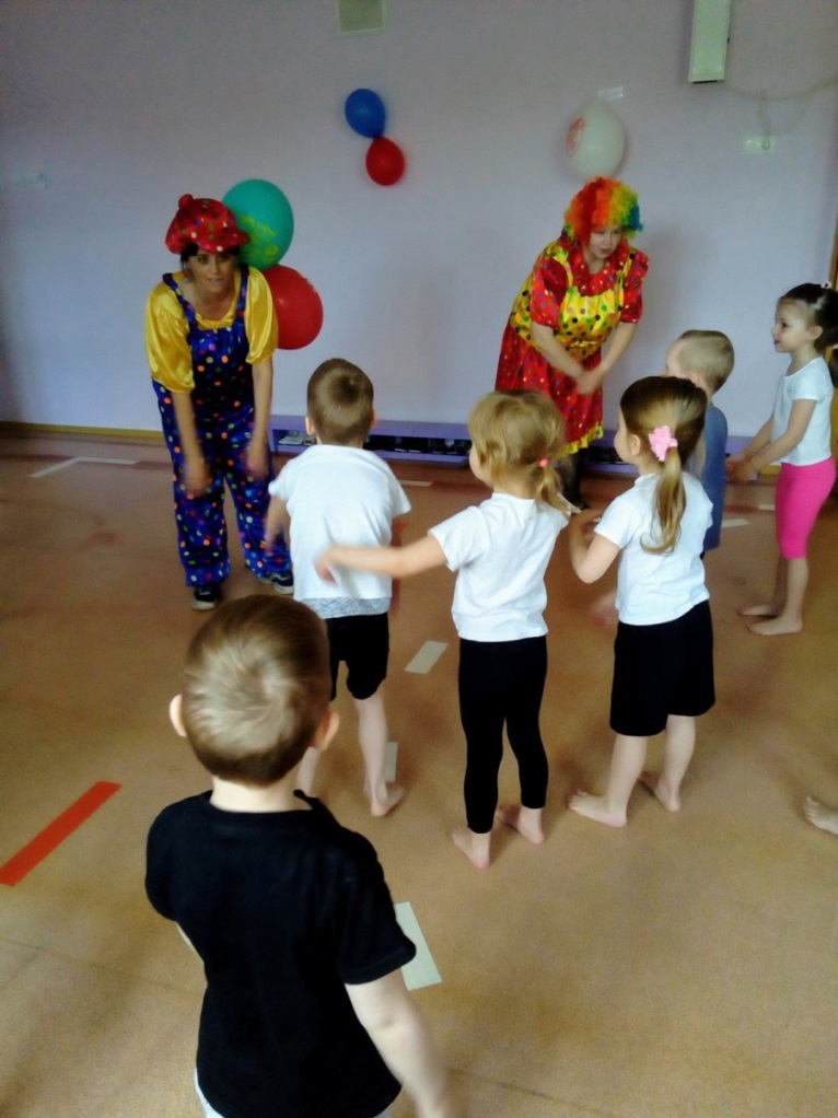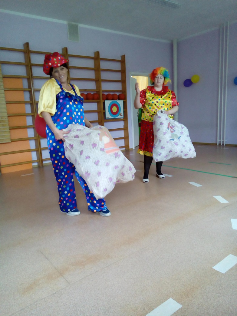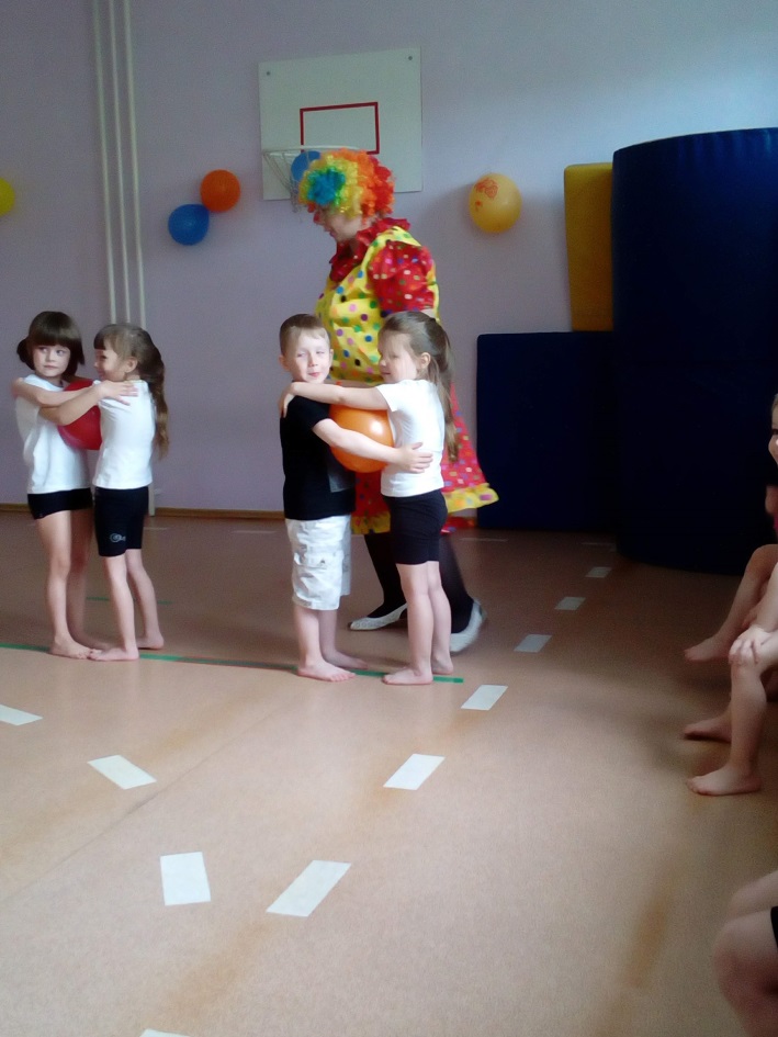 Команды готовы, а теперь начнем играть.(Клоуны становятся в свои команды)