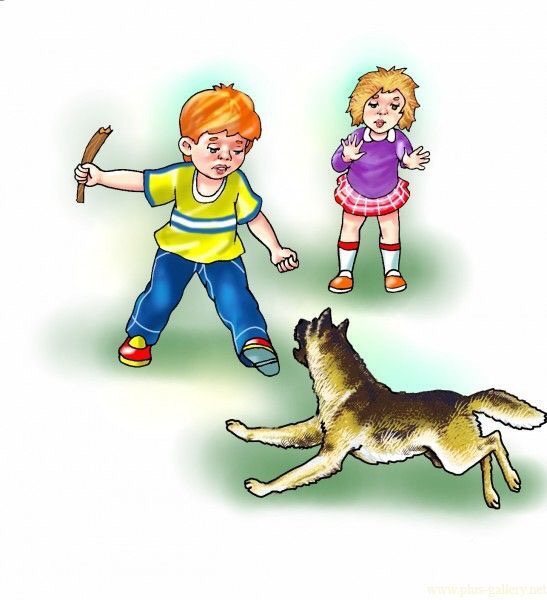 Мальчик защищает девочку от собаки. Он – защитник, храбрый и мужественный.