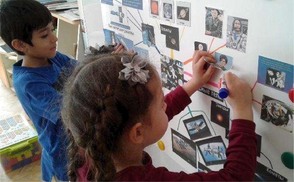 • методические разработки занятий с детьми старшей или подготовительной к школе группы, по созданиюинтеллектуальных карт: «Космос», «Мир профессий», «Зеленое царство», «Семейные традиции»;