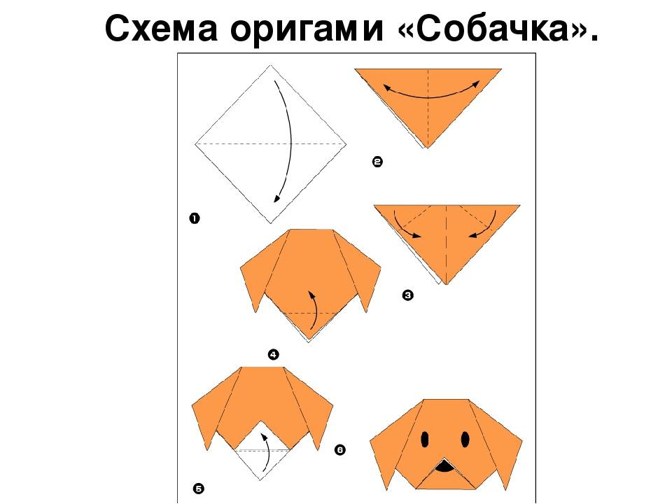 Оборудование: образец собаки – оригами, схема на листе бумаги.