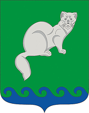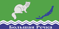В зеленом поле - стилизованное изображение серебряного соболя. В нижней части череда бегущих волн, символизирующих реку Большая.