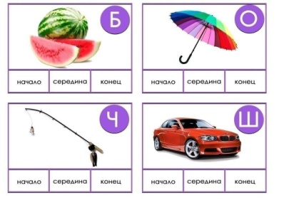 Воспитатель показывает картинку с буквой и просит назвать предмет с заданный звуком.